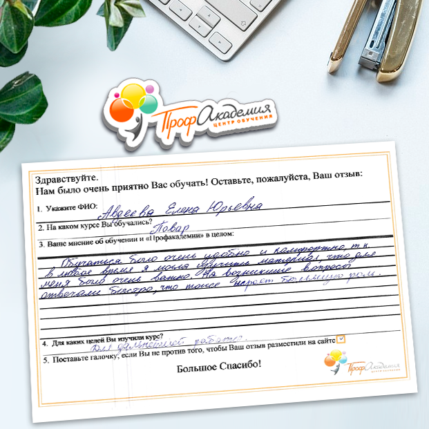 Я в восторге, давно не училась, было страшно начинать, но когда начала обучение, понравилось, все доступно, текст понятен, очень хотелось после чтения задания сразу пройти тест. Персонал академии выслал все документы на почту. Спасибо всем с кем я общалась во время обучения. Дальнейших успехов в работе.